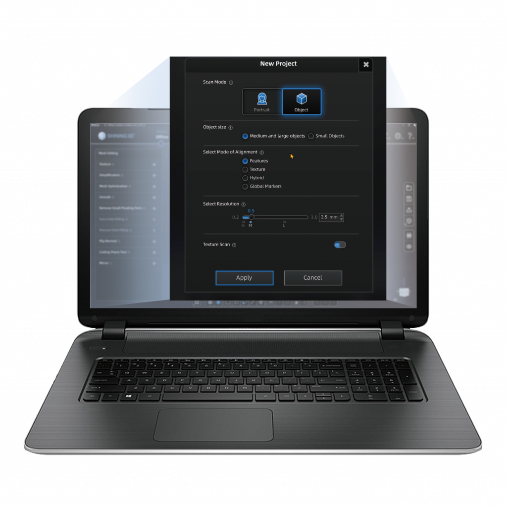 Collect high density point cloud data fast and easily with point distance up to 0.1mm. Scanning speed up to 14 FPS.