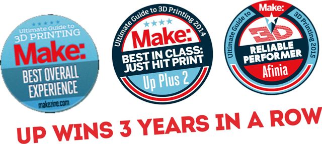 Best 3D Printer - Make Magazine The all-new UP Plus 2 is based on the award winning UP Plus 3D Printer (also known as Afinia in USA) that won the Make Magazine Ultimate Guide to 3D Printing Buyer’s Guide Competition. [tagline_box title=”Make Magazine editors said” description=”A Clear winner and Easy to use, with feature-rich software and impressive print quality.“] The only printer that managed to print the owls nostril was the UP 3D Printer, even 3d printer bureau parts from Shapeways and Ponoko didn’t manage this test correctly. Watch some of the results 20 minutes into the video http://www.youtube.com/watch?v=x4plMvIzlA0.