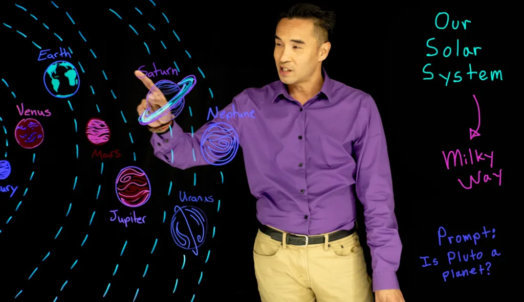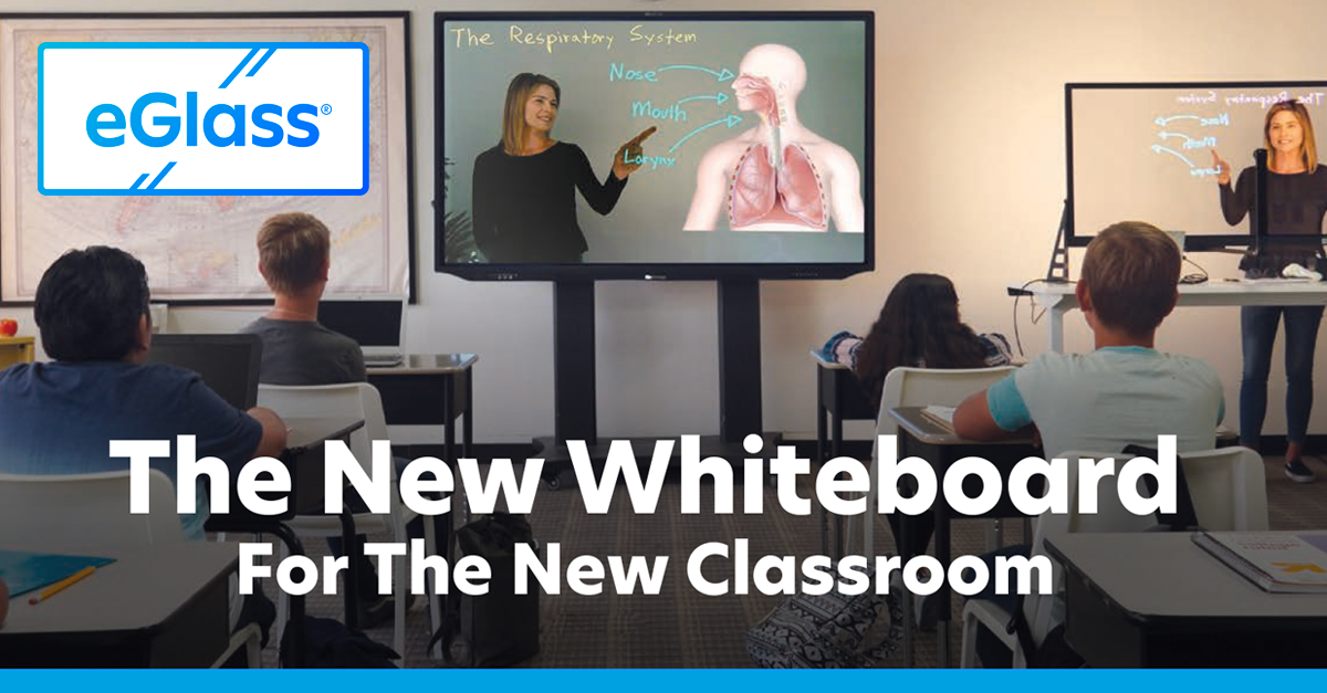 eGlass is an illuminated transparent lightboard with a built-in camera that captures your face and writing together—so you never turn your back and students stay engaged.